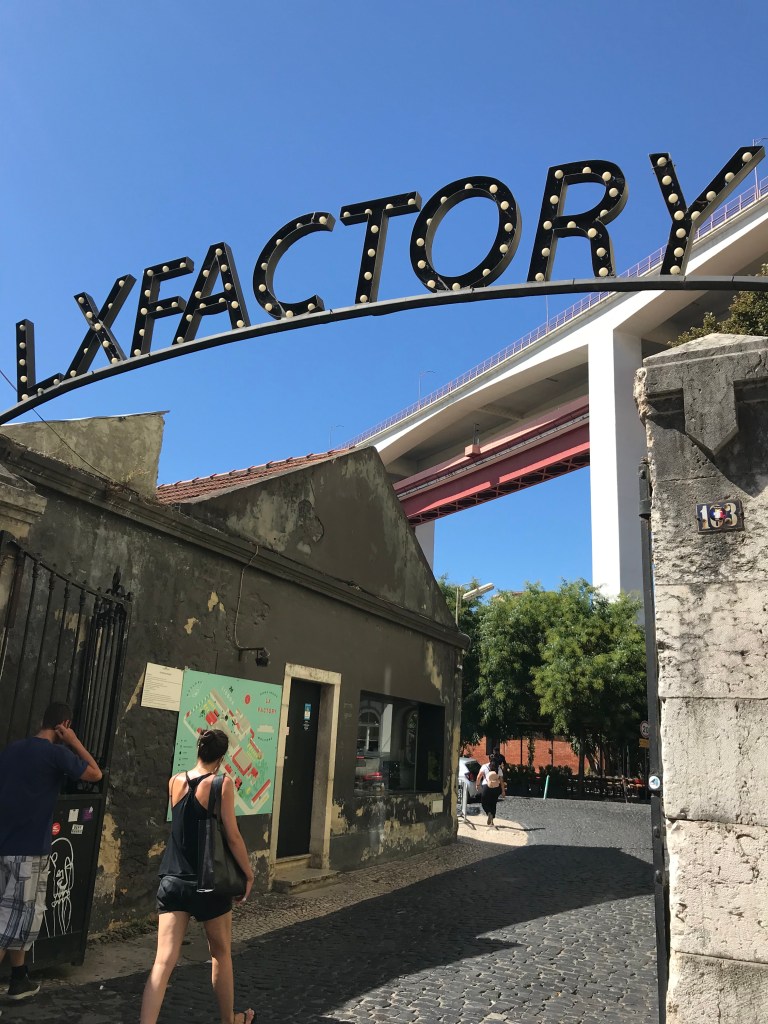 Etwas versteckt aber gar nicht weit vom Hafen liegt die LX Factory. Die LX Factory ist ein altes Fabrikgelände, auf dem man jetzt viele kleine Läden, Restaurants und Cafés findet. In den Läden werden handgemachte Kleidung, Schmuck und Einrichtung verkauft und auch an Essen findet man alles was das Herz begehrt, von Acaíbowls über Käsekuchen bis Burger und Tacos. Perfekt also, um auf einen Snack und einen günstigen Kaffee vorbeizukommen.