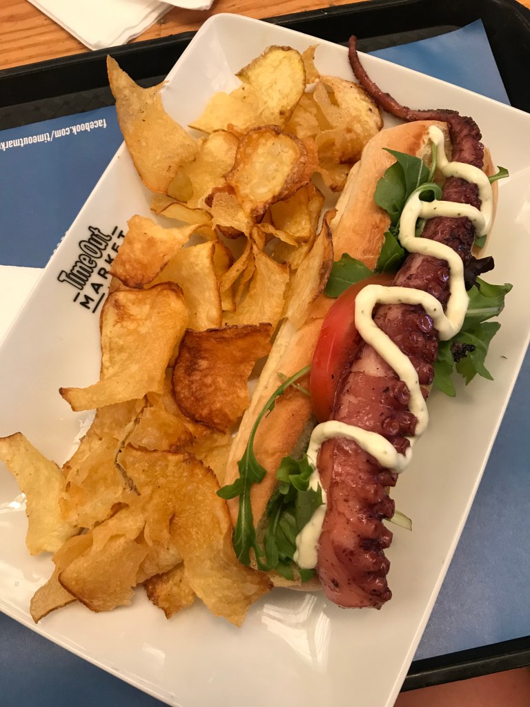 Auch die berühmte Markthalle ist nicht gerade günstig, zu Stoßzeiten zudem auch so voll, dass man kaum treten kann. Dafür gibt es eine echt große Auswahl an Gerichten. Außerhalb der Stoßzeiten kann man aber gut auf eine Mahlzeit vorbeikommen und zum Beispiel einen Oktopushotdog probieren.