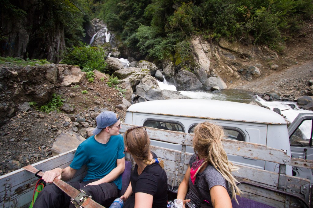Der nette Mann holte seinen Schwager, seinen klapprigen kleinen LKW und einen Eimer Birnen, die er uns mit auf den Weg gab. Auf der kleinen Ladefläche ging es für uns endlich in den Kaukasus. Nie zuvor war ich so lange so weit entfernt von der Zivilisation und plötzlich sollten wir 5 Tage lang auf 2500 Metern Höhe allein durch den Kaukasus wandern? Das war genau das, wonach es klingt – Leichtsinn. Niemand sollte unerfahren so eine Strecke wandern und trotzdem würde ich es immer wieder tun.