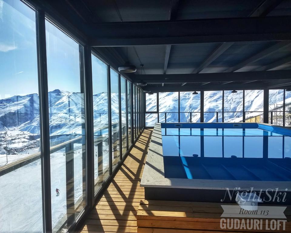 1. Das Gudauri Loft Hotel, denn das hat einen tollen Indoor Pool auf dem Dach mit Panoramablick auf die Berge. Der ist nur für Hotelgäste kostenlos, alle anderen zahlen 23€ Eintritt. Außerdem haben sie ein Restaurant mit Dachterrasse, ein Skidepot mit verschließbaren Spinten und man stolpert aus dem Hotel direkt auf die Piste.