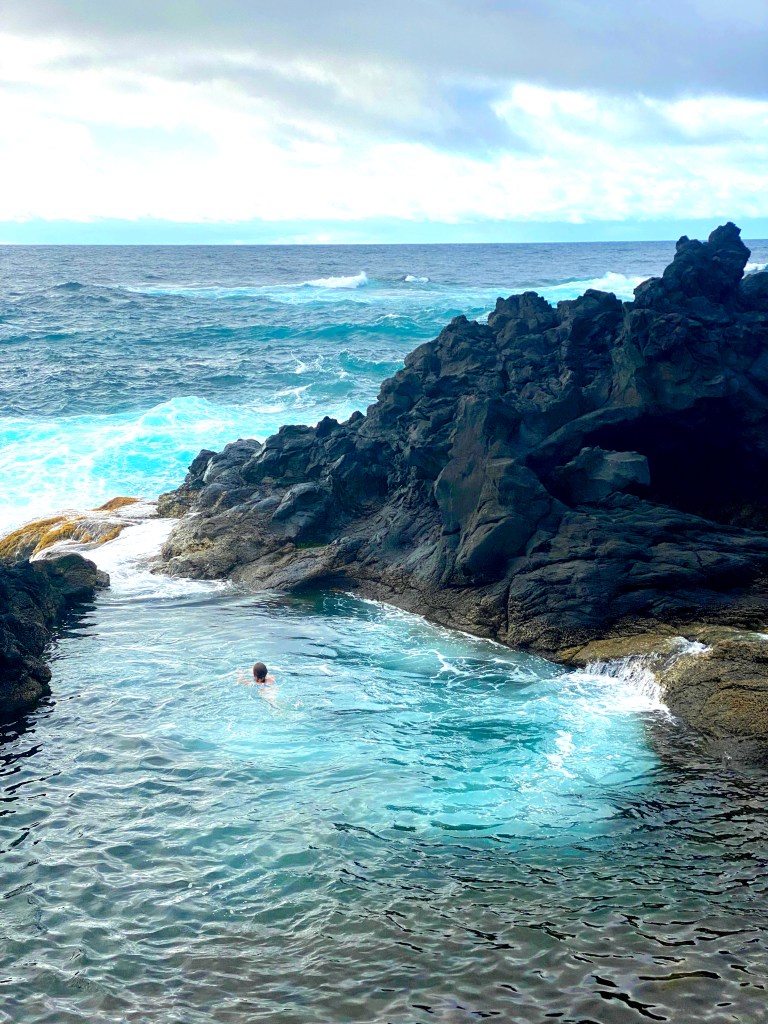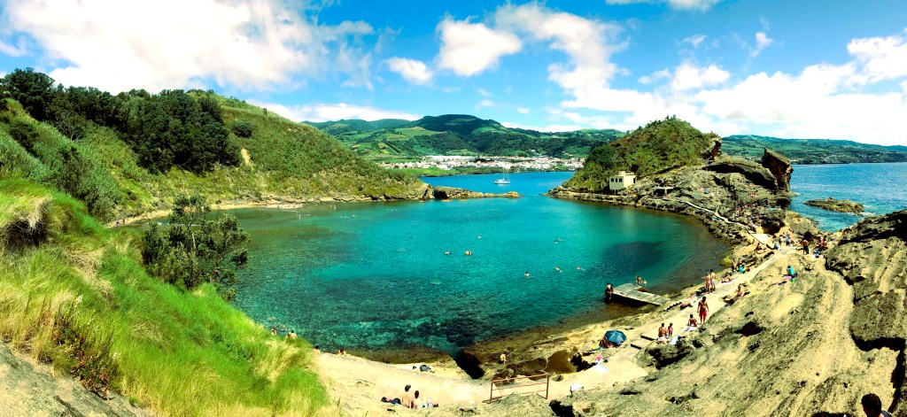 Die kleine Insel liegt vor dem Küstendorf Vila Franca do Campo. Von hier bringt jeden Tag ab 10 Uhr ein Boot die Besucher auf die Insel. 400 Leute dürfen sie jeden Tag besuchen, aber nur 200 gleichzeitig. Das Boot fasst etwa 40 Menschen, bei einer Umlaufzeit von 20 min wartet man also eine Weile. Alternativ könnt ihr eine Kanutour buchen! Zu unserem Glück konnte man derzeit keine Tickets online reservieren. Wir hatten uns in der Zeit vertan und waren eine halbe Stunde zu früh am Ticketschalter. Trotzdem war die Schlange schon endlos. Auf der Insel könnt ihr euch dann auf den Felsen einen Platz suchen. Baden kann man draußen im Atlantik oder in der runden Bucht. Hier ist das Wasser sehr flach aber auch sehr klar und eignet sich super zum Schnorcheln. Es gibt einige kleine, bunte und größere Fische, sogar eine Flunder habe ich gesehen! Auch an Land gibt es viele Eidechsen und Krabben zu sehen und außerdem sind ein Aussichtspunkt und Toiletten vorhanden.