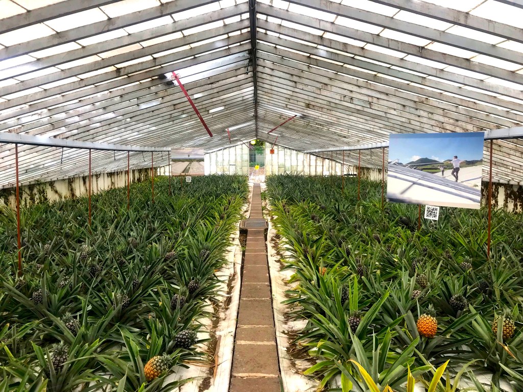 Die Ananasplantage in Ponta Delgada haben wir nur zufällig gefunden. Am Eingang wurden wir von einem Kind eingewiesen dem Pfad durch die Gewächshäuser zu folgen. Dabei sieht man die Früchte in verschiedenen Reifestadien und überall hängen QR Codes, über die man auf der Website mehr Infos zu Anbau, Geschichte und Vertrieb bekommt. Danach kommt man zur Bar, wo es gratis Ananasmarmelade und Likör zu probieren gibt. Der Eintritt ist übrigens auch gratis! Dazu haben wir Ananassaft und Caipirinha in Ananasgläsern bestellt. Auf dem Gelände steht eine große Metallananas, die im Dunkeln leuchtet.