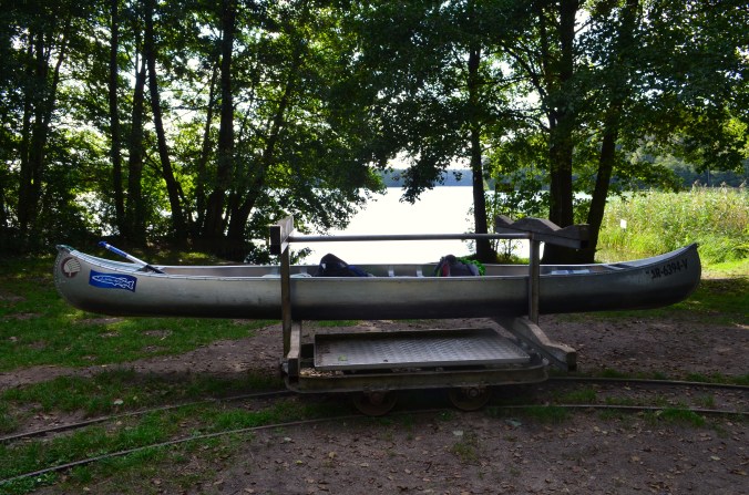 Mit unserem Kanadier überquerten wir einmal von Norden nach Süden den Käbelicksee. Durch eine unscheinbare Lücke im Schilfgürtel kamen wir auf den Granziner See und den sehr kleinen Schulzensee, auf dem außer Schwänen und Enten niemand unterwegs ist. Auf dem ersten längeren Abschnitt auf der Havel liegt die Umtragestelle an der Granziner Mühle. Wir mussten das Kanu über die Straße auf die Gleislorenbahn tragen, was relativ schwer war. Die Loren rollen aber fast von allein und erfordern kaum Kraft. Insgesamt 3 Loren für je 4 Kanus stehen bereit, um die Boote 750 m über Land zum Pagelsee zu rollen. Auf diesem fahrt ihr unter einer alten Holzbrücke hindurch und kommt nach einem Stück auf der Havel auf den Zotzensee. Diesen dürft ihr nur entlang der grünen Tonnen überqueren, denn er steht streng unter Naturschutz.