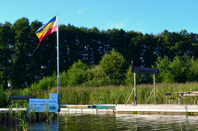 Kanuwandern im Nationalpark bedeutet einerseits viel Ruhe und Natur. Andererseits bedeutet es auch, dass ihr nicht überall halten dürft, wo es gerade schön ist. Erlaubt ist dies nur an ausgeschriebenen Rast- und Badestellen, die auf der Karte markiert und unterwegs ausgeschildert sind. Auf manchen Seen dürft ihr auch nicht einfach frei fahren, sondern müsst sie entlang einer Markierung aus grünen Tonnen überqueren. Auch die Zeltplätze sind auf der Karte sichtbar, wir haben für 7€ pro Person unser Zelt bei der Fischerei Babke aufgeschlagen. Ihr solltet es aber innerhalb eines Tages leicht bis zum Naturcampingplatz Hexenwäldchen am Jamelsee schaffen. Was natürlich überall gilt, ist ein rücksichtsvoller Umgang mit der Natur!