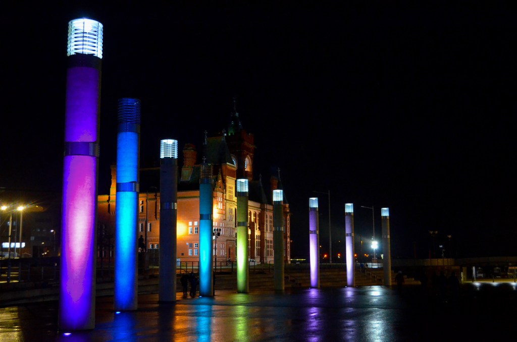 Die Cardiff Bay ist die Bucht etwas außerhalb des Stadtzentrums, an der die bekanntesten Sehenswürdigkeiten von Cardiff liegen. Dazu gehört das Wales Millennium Centre, das Theater und Konzerthalle zugleich ist. Auf dem Vorplatz vom Peer Head leuchten die bunten Säulen. Das rote Peer Head selbst ist womöglich das bekannteste Motiv in Cardiff. Neben ihm reiht sich direkt der Welsh Senedd, das walisische Parlament an. Ich finde wie so oft in Städten, dass die Gebäude bei Nacht beleuchtet viel besser wirken als tagsüber!