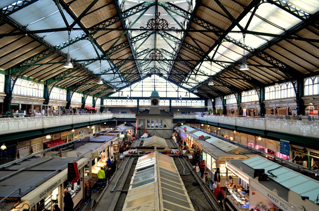 Der Central Market ist eine Markthalle nahe des Schlosses, in der es statt teurem Street Food richtige Lebensmittel gibt. Hier bekommt man Fisch, Obst und Gemüse, Backwaren und vieles mehr. Wir kamen zum Frühstück und setzten uns mit Brownies, Welsh Cakes, Baklava und Obst oben an die Galerie mit Blick über den Markt. Ein mindestens so schönes wie außergewöhnliches Frühstück.