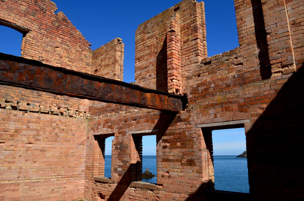 Der Lost Place liegt an einer wunderschönen Bucht und ist noch kaum bekannt. Die Schornsteine, Gebäude und Kuppeln aus Backstein sind halb von Efeu überwachsen und halb vom Meer fortgespült. Die Öfen und Kessel der alten Ziegelei sind noch gut erhalten. Vom Felsbogen hat man einen tollen Überblick über die Anlage und die Bucht. Hier würden wir irgendwann auch gern mit einem Segelboot und Blick auf die alte Ziegelei liegen. Wir entschieden uns heute hier zu zelten, dafür war es aber noch etwas zu früh.