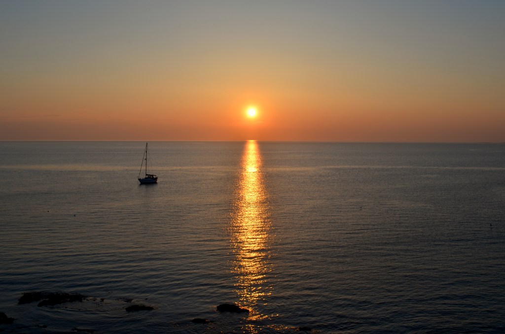 Weil das Wetter so schön war, fuhren wir noch einmal zum Twr Mawr Leuchtturm, um den Sonnenuntergang zu sehen. So lang hatte ich den Wanderweg dahin gar nicht in Erinnerung, aber zumindest war es diesmal stiller. Wir setzten uns eine Weile zum Lesen in eine Bucht an den Strand, bis die Sonne unterging.