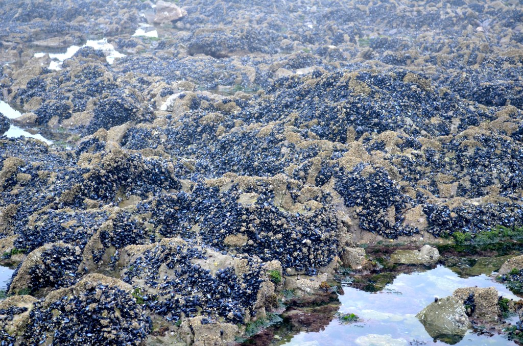 Wohin genau wir mussten, haben wir im Nebel nicht erkannt und uns einfach am Wasser orientiert. Kaum zu glauben, dass wir gerade laufen, wo vor einer Stunde noch Meeresboden war! Dementsprechend waren die Steine voller lebender, schwarz-blauer Miesmuschel. Auch eine Robbe haben wir zwischen den Felsen entdeckt, sie hat wohl die Flut verpasst und musste dort jetzt die nächsten Stunden ausharren. Wir haben sie erst durch ihr lautes Schnauben bemerkt und uns sofort entfernt, um sie in ihrer misslichen Lage nicht noch zusätzlich zu bedrängen. Auf der Insel sind wir nur noch bis zur Devil’s Bridge gegangen, denn vom eigentlichen Wormshead an der Spitze konnte man im Nebel eh nicht viel sehen. Auf dem Rückweg kamen uns dann schon massig Leute entgegen, eine halbe Stunde früher zu kommen hat einiges ausgemacht! Ich hätte nicht gedacht, dass wir für den kleinen Abstecher 2 h brauchen würden!