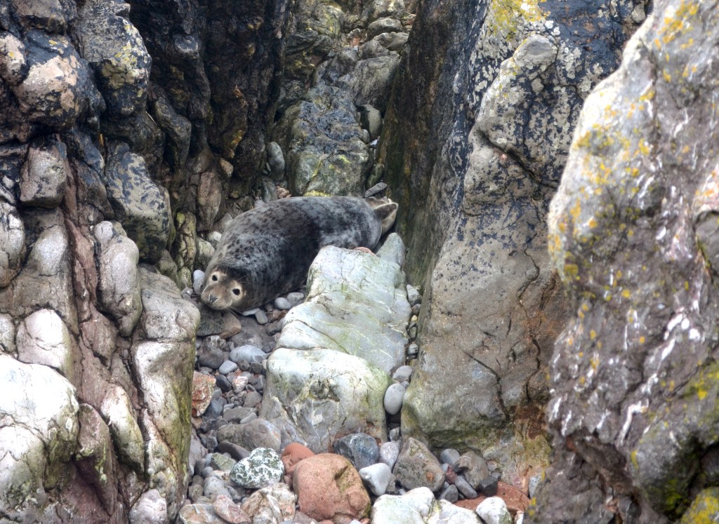 Wir wollten uns noch einmal auf die Suche nach Papageientauchern begeben und es diesmal am North Stack versuchen. Die Vögel haben wir leider nicht gesehen, dafür konnten wir aber von oben die Seehunde beobachten. Wir waren direkt über ihnen und wurden sogar von ihnen bemerkt. Aber sie wussten auch, dass wir nicht zu ihnen kommen können und haben sich völlig normal verhalten. Sie haben sich gepaart, sind immer wieder über Felsen im Wasser gerutscht und haben mit den Bojen gespielt, die eigentlich die kleine Insel markieren sollen. Als ein paar Seekajaker kamen, tauchten 9 neugierige Seehunde gleichzeitig auf, um die Kajaks zu inspizieren. Sie haben das Kajak und das Paddel sogar berührt. Jetzt würde ich doch gern seekajakfahren!