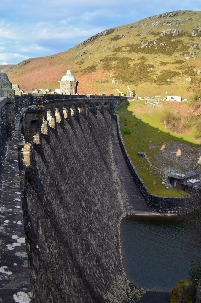 Auf dem Rückweg haben wir noch einen Stopp im Elan Valley eingelegt. Bei Sonnenuntergang haben wir mit Blick über das Tal zu Abend gegessen, bevor wir weiter zu den Staudämmen fuhren. Ich war schon einmal im Oktober hier, damals liefen die Staudämme noch über und bildeten riesige Wasserfälle. Wir hatten damals aber leider keine Zeit zum großen Craig Goch Damm zu gehen und hatten nur den Pen y Garreg Damm gesehen. Diesmal konnten wir zwar beide Dämme sehen, aber da es zu lange nicht geregnet hatte, liefen die Dämme nicht mehr über. Wieder konnte ich den Wasserfall am Craig Goch Damm nicht sehen. Trotzdem sahen die Dämme und Seen im Sonnenuntergang wunderschön aus, dann muss ich eben noch ein drittes Mal wiederkommen – irgendwann! Eine Fahrt durchs Elan Valley gehört zu einem guten Roadtrip durch Wales einfach dazu!
