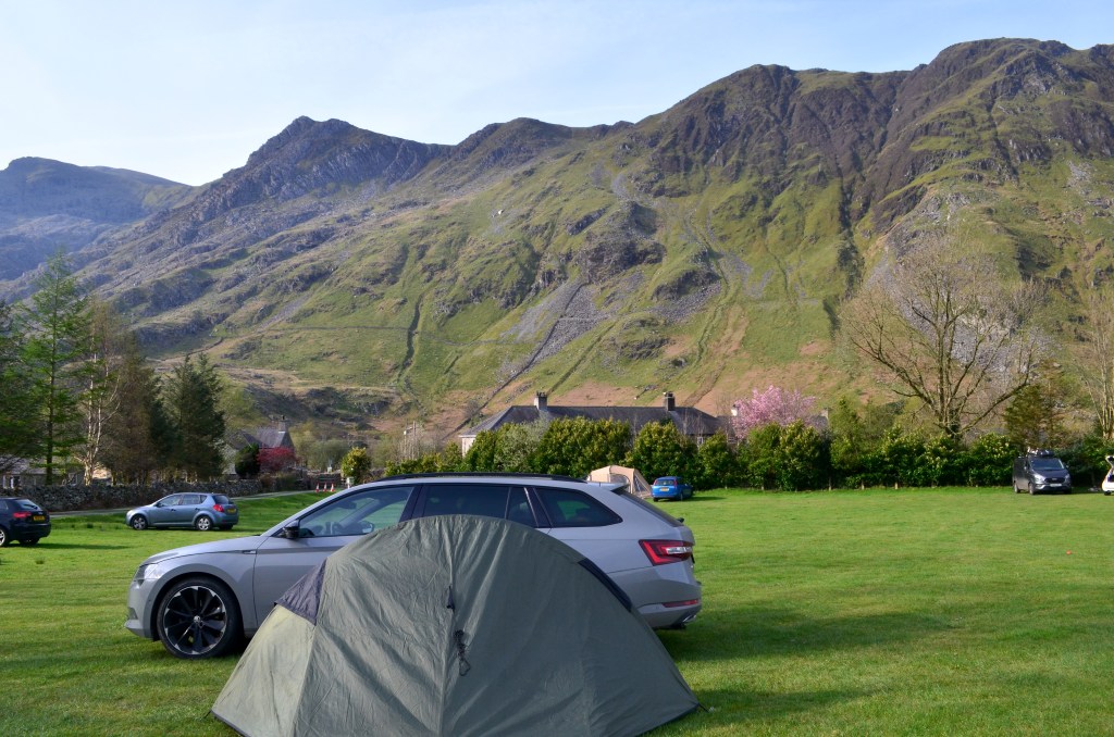 Noch auf dem Snowdon haben wir unseren ersten Campingplatz angerufen, um nicht wie auf Gower wieder zu spät dran zu sein. Heute Abend wollten wir einen festen Platz und eine Dusche und es tat verdammt gut, endlich mal wieder zu wissen, wo wir heute Abend schlafen! Hier läuft es auch etwas entspannter als auf Gower. Privatleute in Farmhäusern bieten ihre Grünflächen als Campingplatz an, ein kleines Häuschen stellt Duschen und Toiletten bereit und abgerechnet wird in Bar über das Wohnzimmerfenster. Für £ 10 pro Person und Nacht konnten wir endlich mal wieder zivilisiert nächtigen und das mit Bergpanorama!