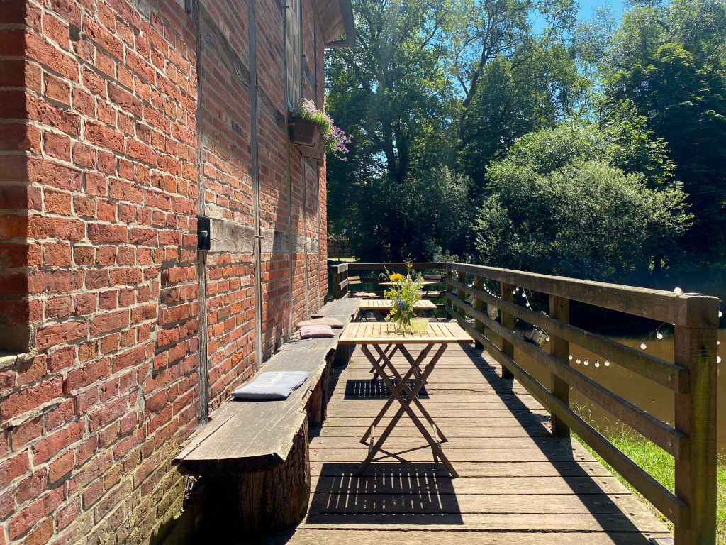 Nach gerade einmal 2,5 km erwartete uns am Ufer das Oste Café in der ehemaligen Wassermühle Eitzmühlen. Das alte Mühlrad ist noch erhalten und auch innen lassen Backstein und Fachwerk das Café urig und rustikal wirken. Hinter der Treppe kann man zwischen den Stockwerken die alten Maschinen und Zahnräder der Mühle sehen. Draußen stehen im Schatten der Bäume noch Tische im Sand, perfekt also um Barfuß zu bleiben. Von unserem Platz konnten wir eine Reiterin beobachten, die mit ihrem Pferd im Fluss badete. Im Café gibt es selbstgemachte Kuchen und Torten, Kaffee und Limonaden. Regelmäßig am Sonntag gibt es ein Frühstücksbuffet und gelegentlich Events wie Grillabende. Die idyllische Atmosphäre ist einfach traumhaft und ich werde sicher noch öfter herkommen!